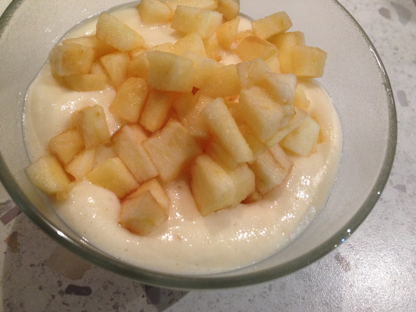 Une petite recette légère et fruitée : une crème pâtissière très aérienne avec adjonction de blanc en neige servie avec une brunoise de pommes pour le côté croquant et fruité, voilà mon idée du soir. Nous avons trouvé cette recette plutôt agréable, à vous de tester...